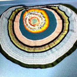 Chaque point tricoté, crocheté, cousu est la marque d’un instant. Chaque point est la matérialisation du temps qui passe et de la pensée qui s’écoule dans les mains et les matières. Chaque jour nous rapproche de la fin du système solaire et sûrement, bien avant, de la fin de notre civilisation.